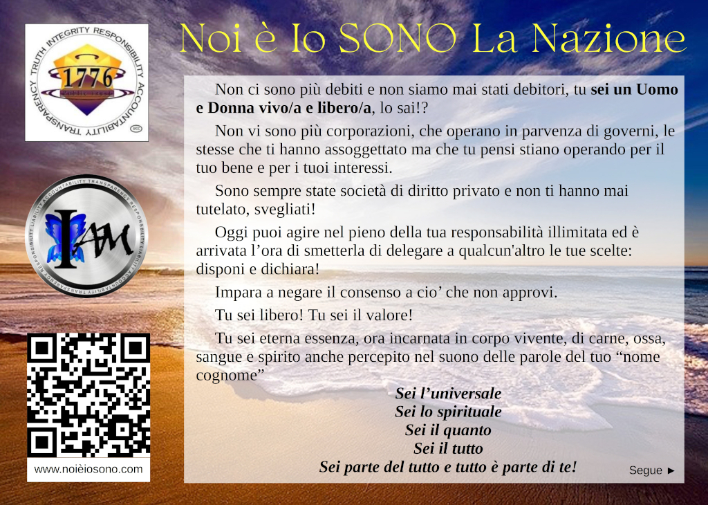 Non ci sono più debiti e non siamo mai stati debitori, tu sei un Uomo e Donna vivo/a e libero/a, lo sai?